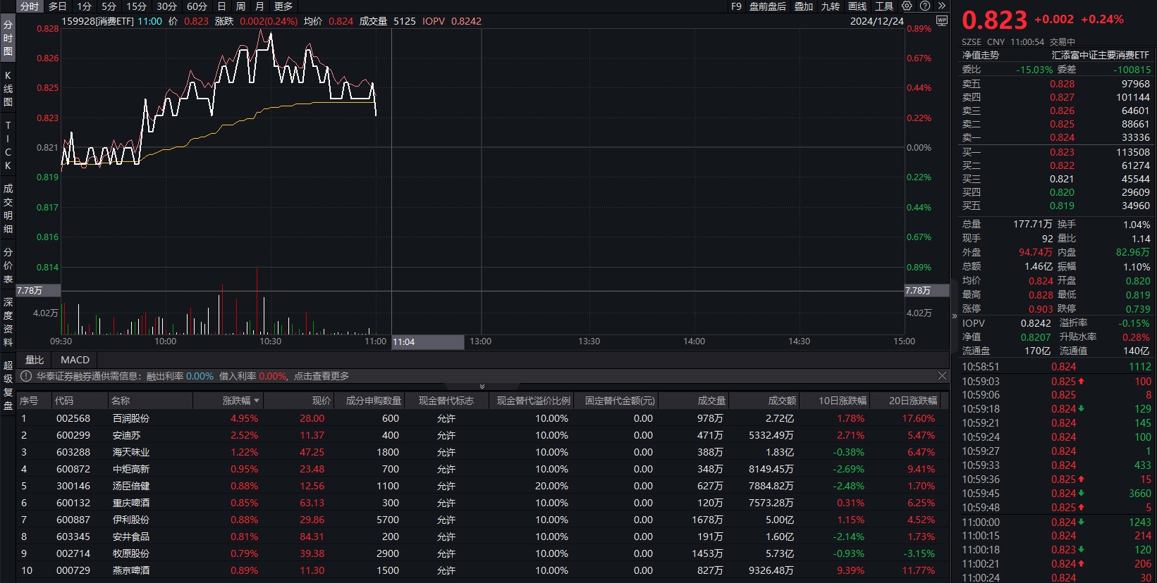 你的位置:股票配资操作过程_在线股票配资平台_实盘炒股杠杆线上操作 > 实盘炒股杠杆线上操作 > 配资股票网 消费ETF(159928)震荡飘红,百润股份涨近5%,机构:明年促销费政策将进一步带动需求释放